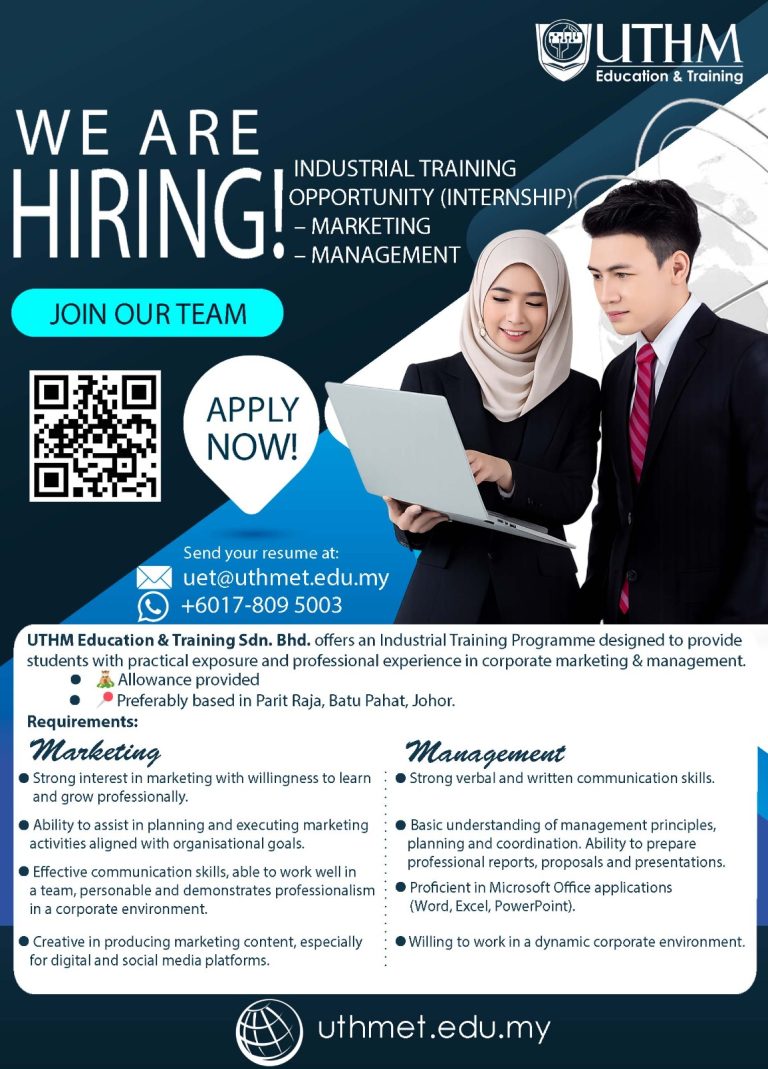 UTHM EduTrain Internship Programme is open to all university students in Marketing and Management field. Please refer to the requirements below before applying:
